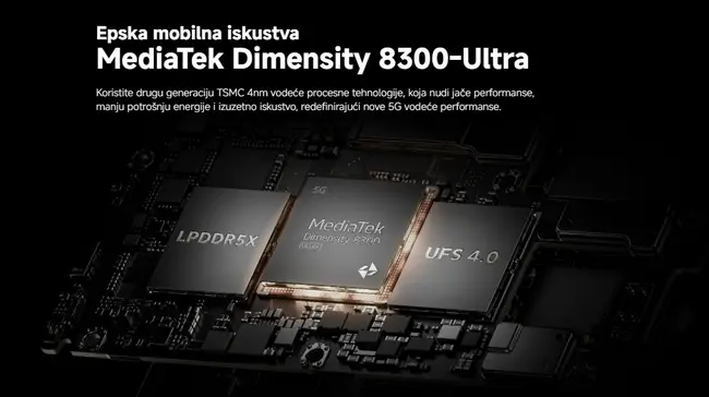MediaTek Dimensity 8300-Ultra procesor sadrži osmojezgarni CPU i dvojezgarni GPU, omogućavajući 14T da sa lakoćom upravlja surfanjem webom, društvenim mrežama i sistemskim aplikacijama.